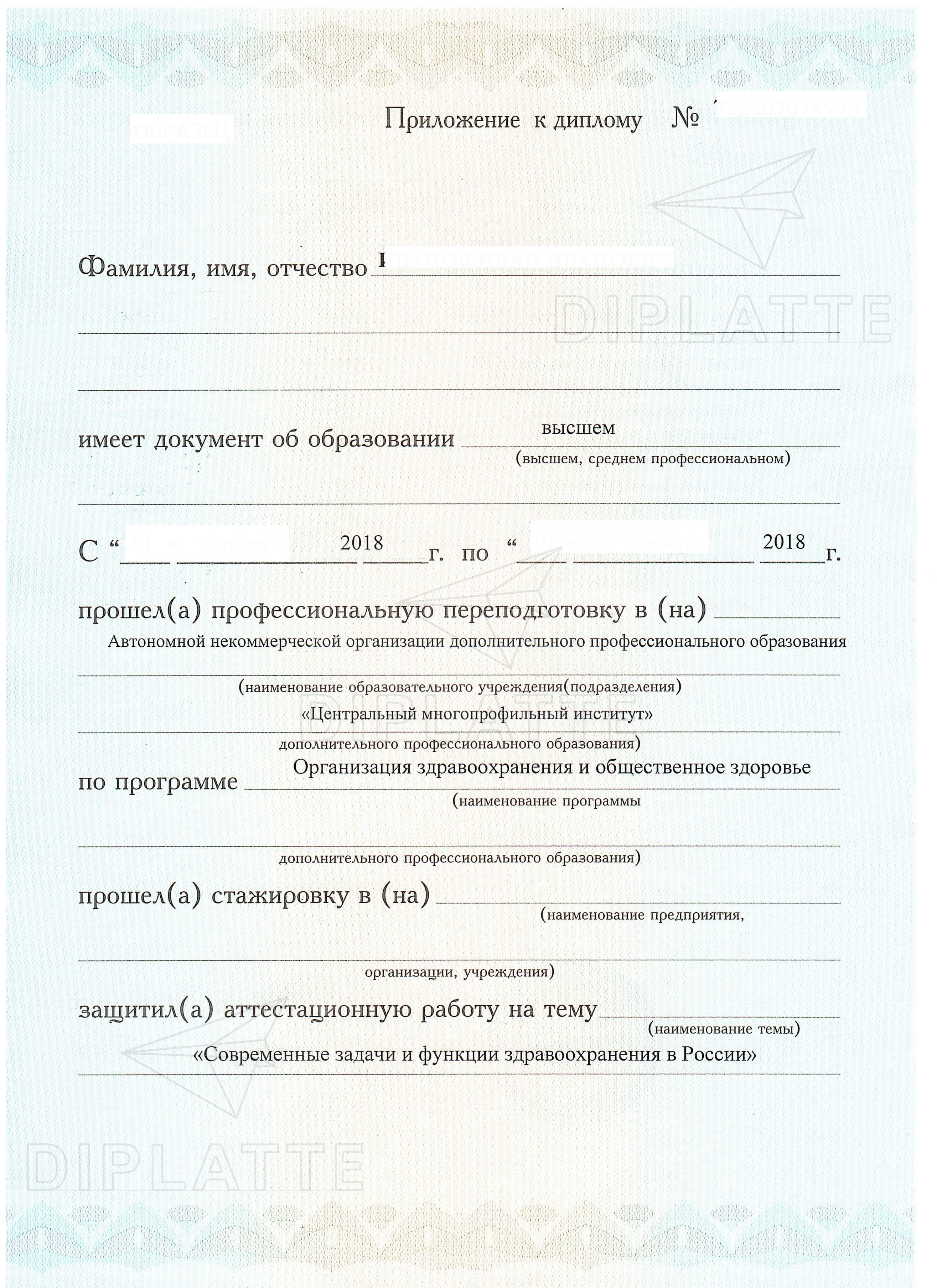 Если вы решили купить диплом о профессиональной переподготовке, то возможно вам ещё понадобится свидетельство о повышении квалификации. Такой документ мы тоже делаем. Подробнее можно почитать и заказать здесь.