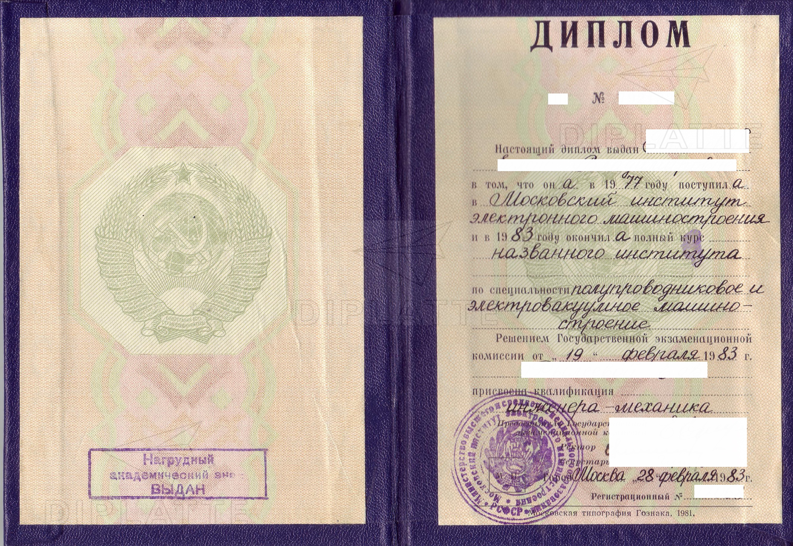 У нас вы также можете купить диплом о среднем профессиональном (от техникума) любой советской республики.
