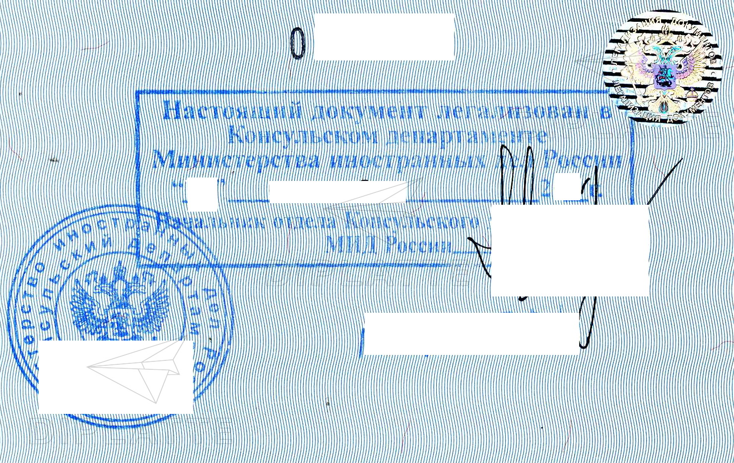 • Затем надо сделать печати и подписи представителя Консульского департамента МИД в РФ.