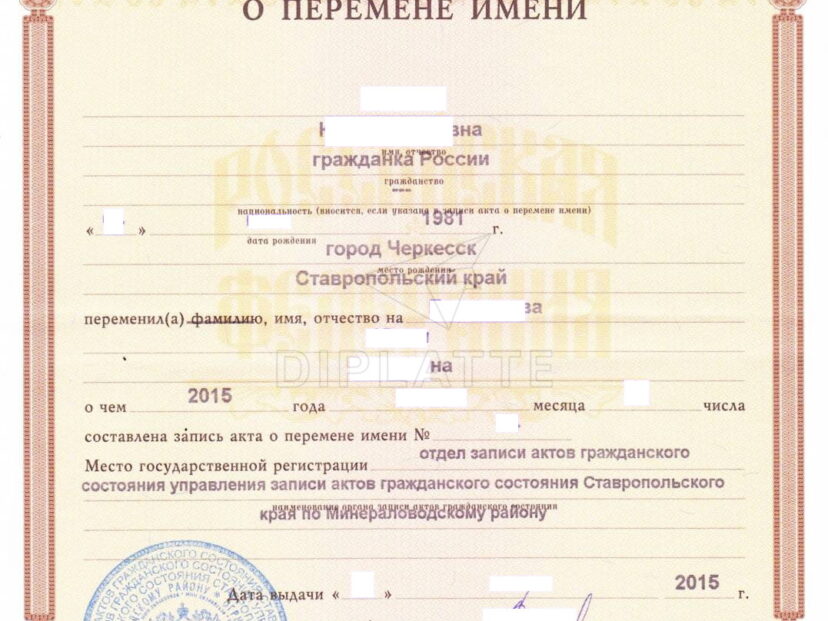 Свидетельство о перемене имени